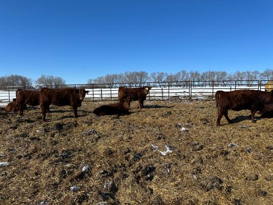 40 Red Simmental X & Red Angus X Feb/March born open replacement heifers.