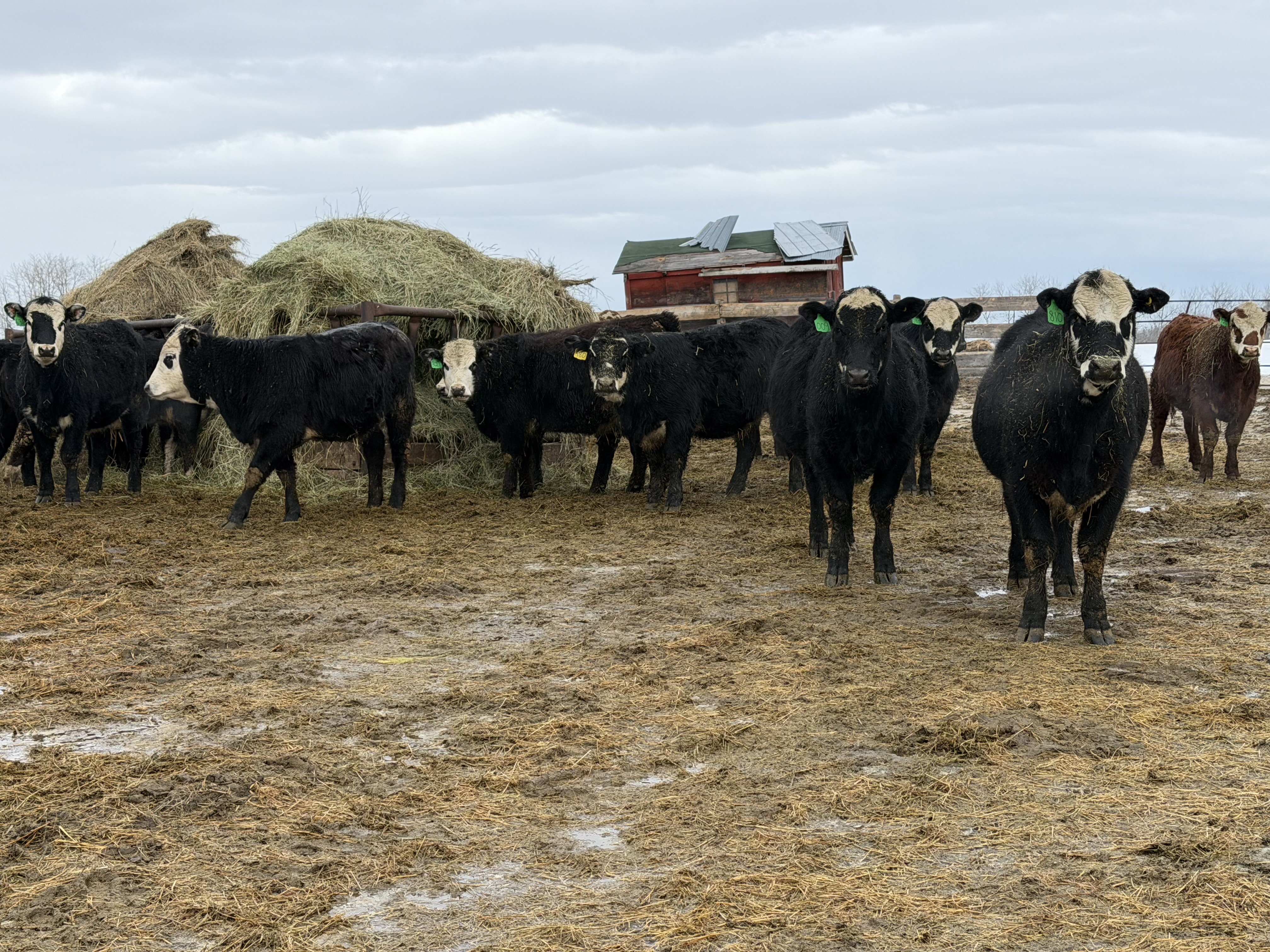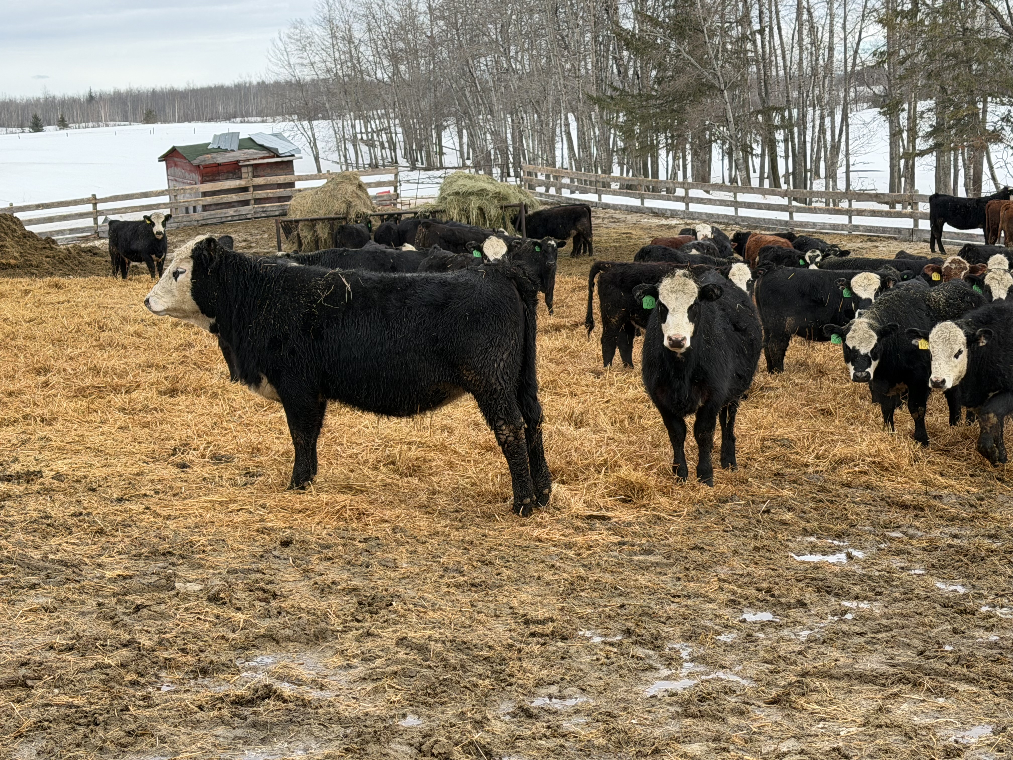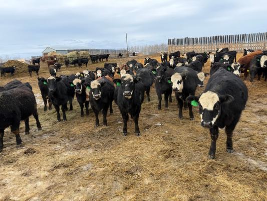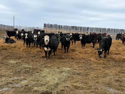 100 home raised, mostly black & black baldy April/May born F1 cross Black Angus & Hereford heifers.