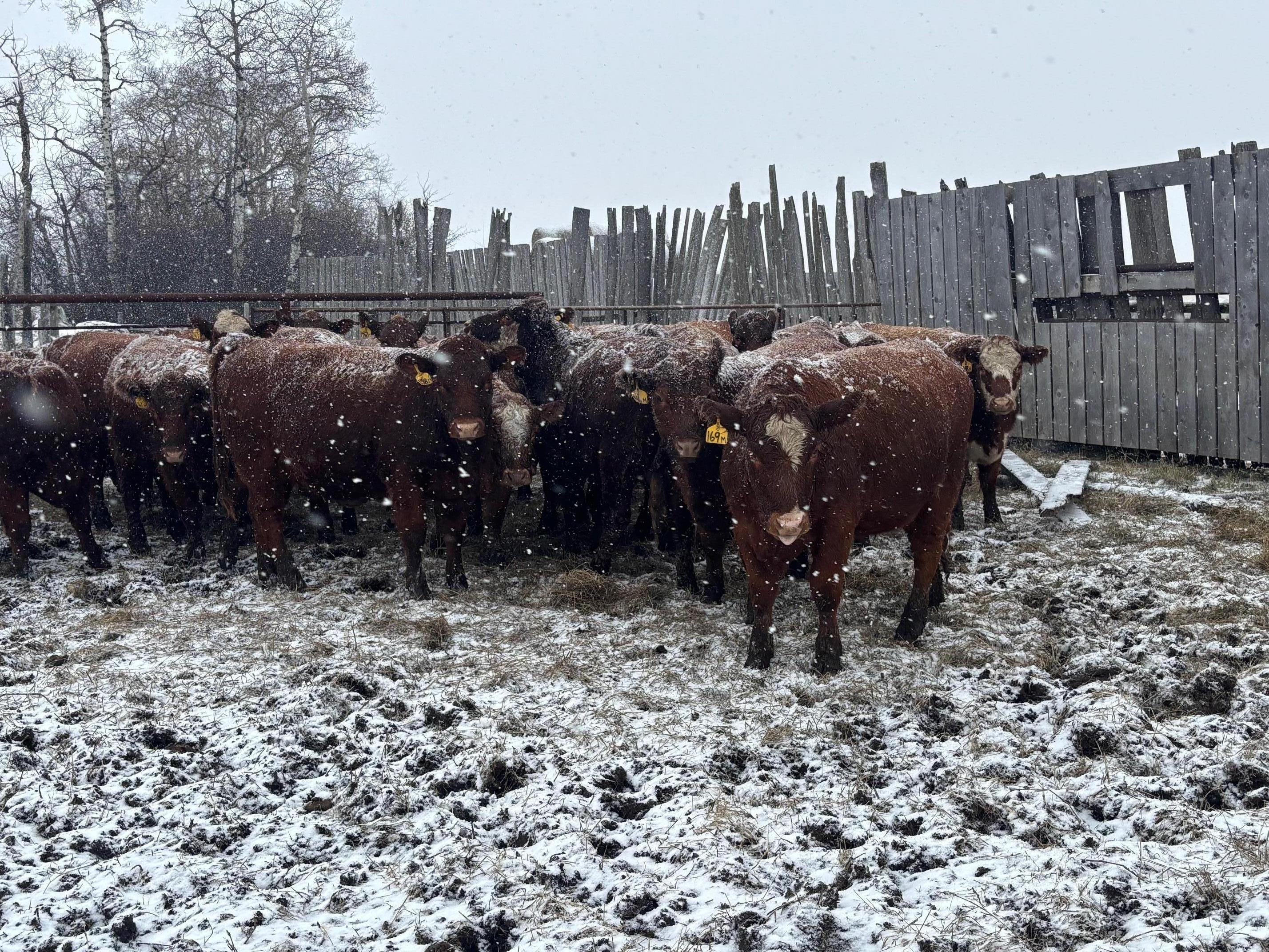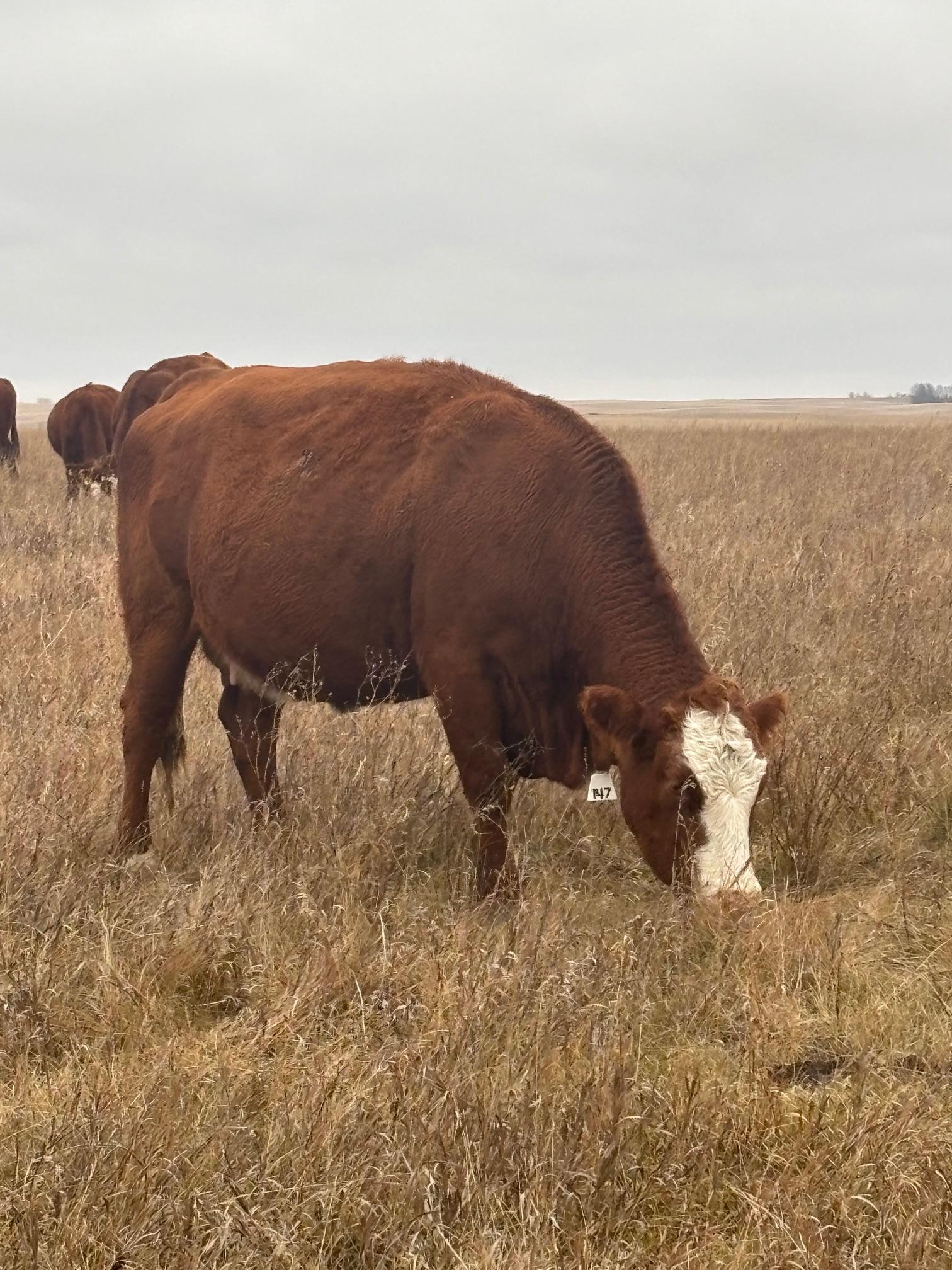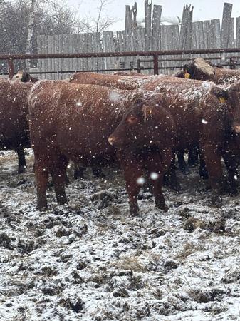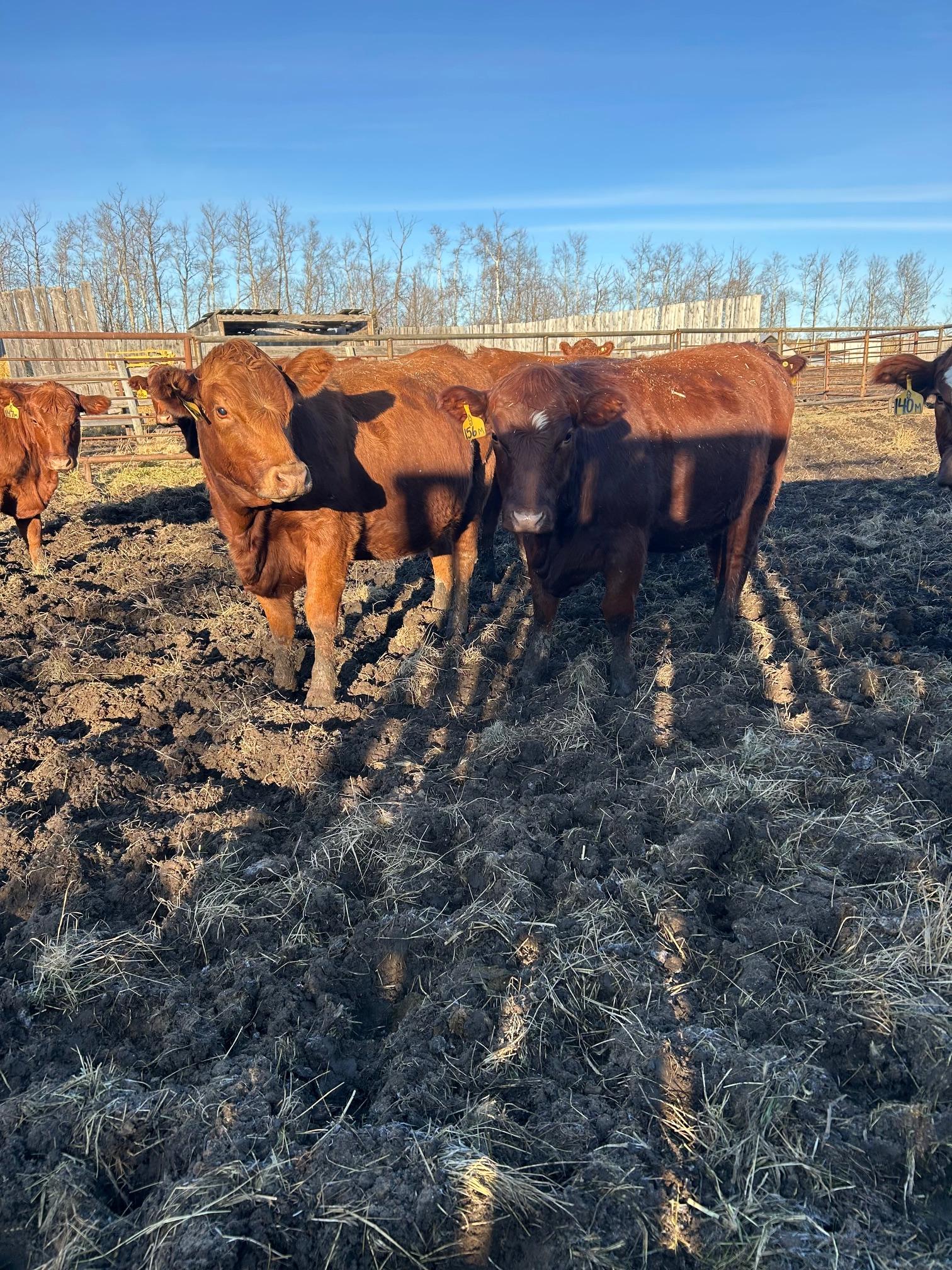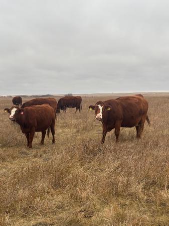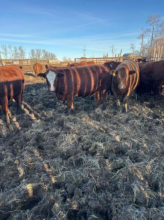 Bred to Red Simmental or Red Angus bulls. Bulls out May 23th for March 1st calving.