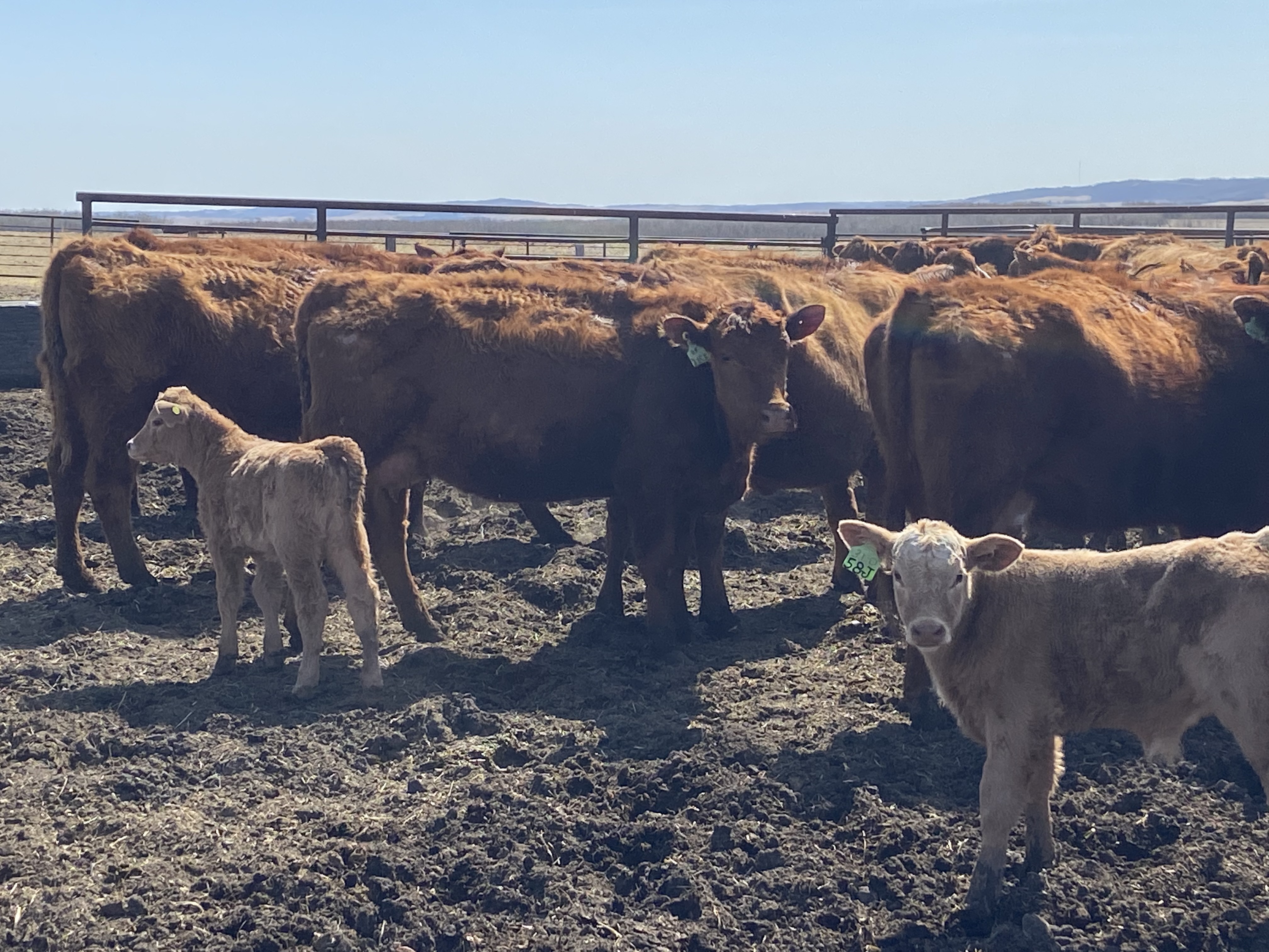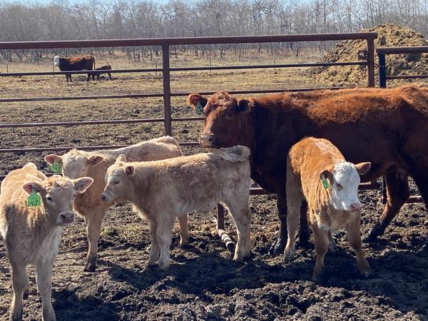 2nd to 4th calvers with March/April Charolais calves at side.