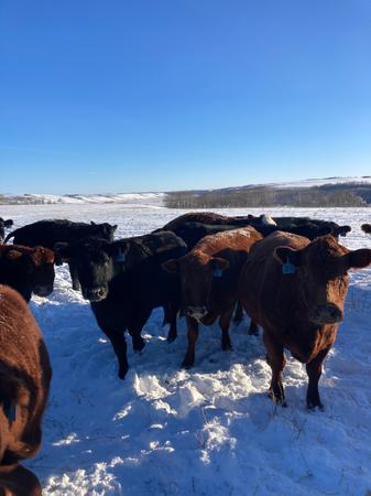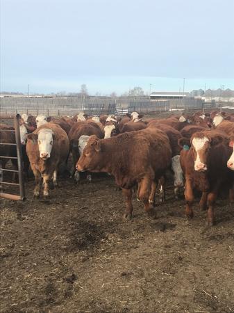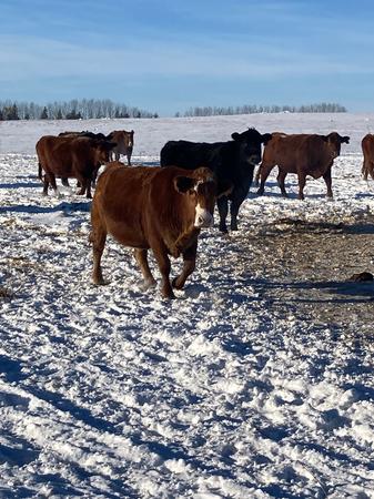 -180 Red & red baldy Simmental X heifers bred to Red Angus bulls to start calving March 1