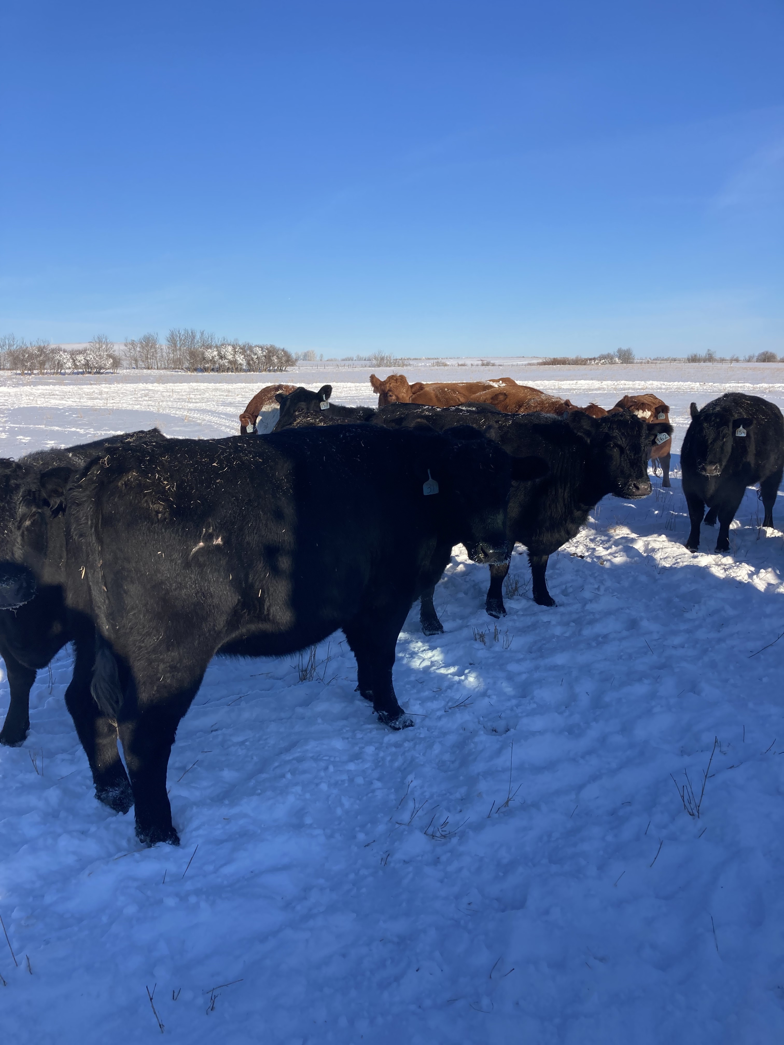 -220 RWF & goggle-eyed Simmental X heifers bred to Everblack Angus bulls to start calving March 1