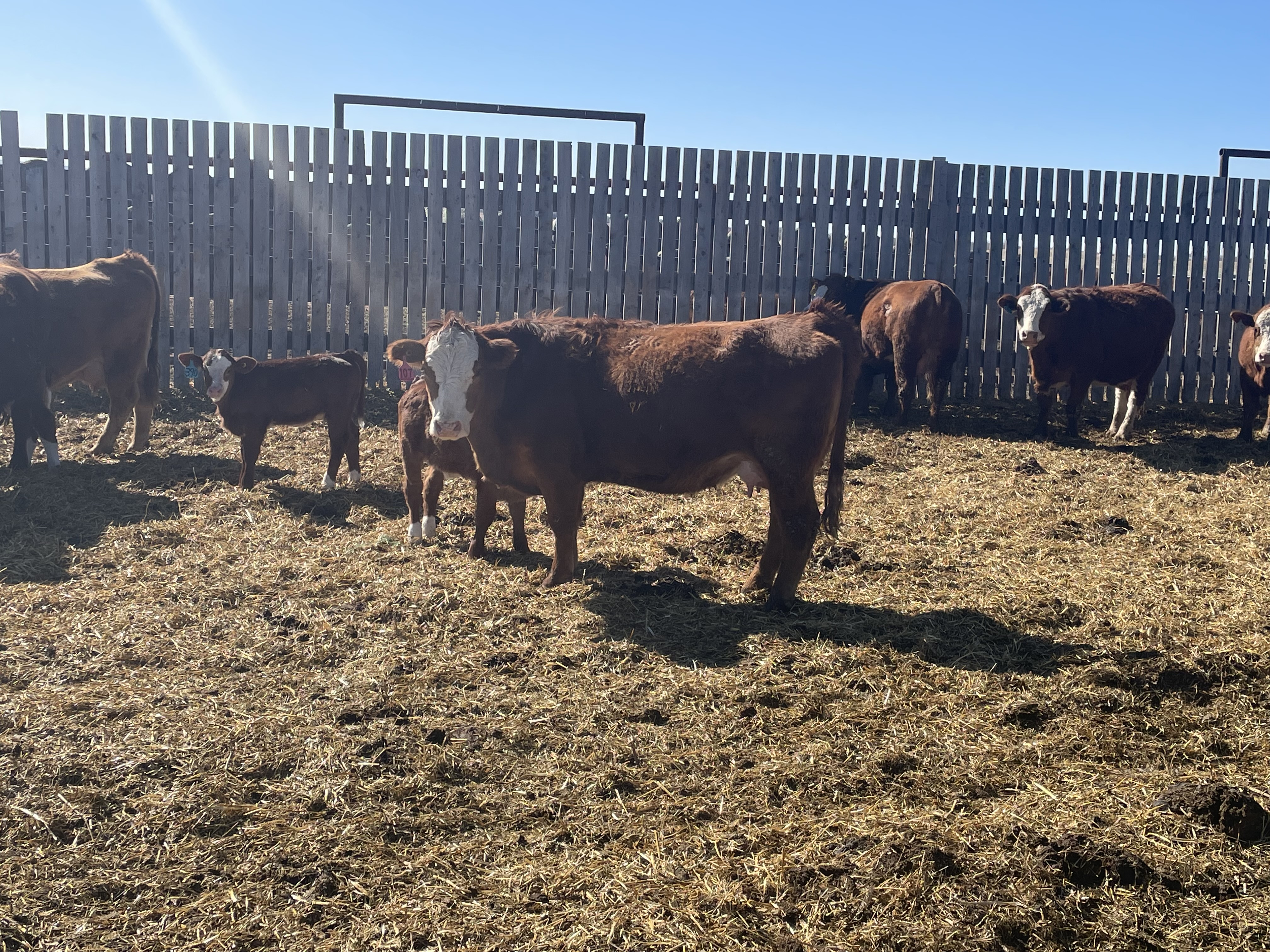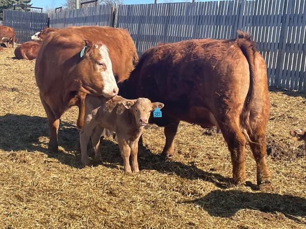 15 second calvers with Simmental calves at side,