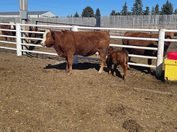 60 Simmental Cow/Calf pairs with March calves at side.