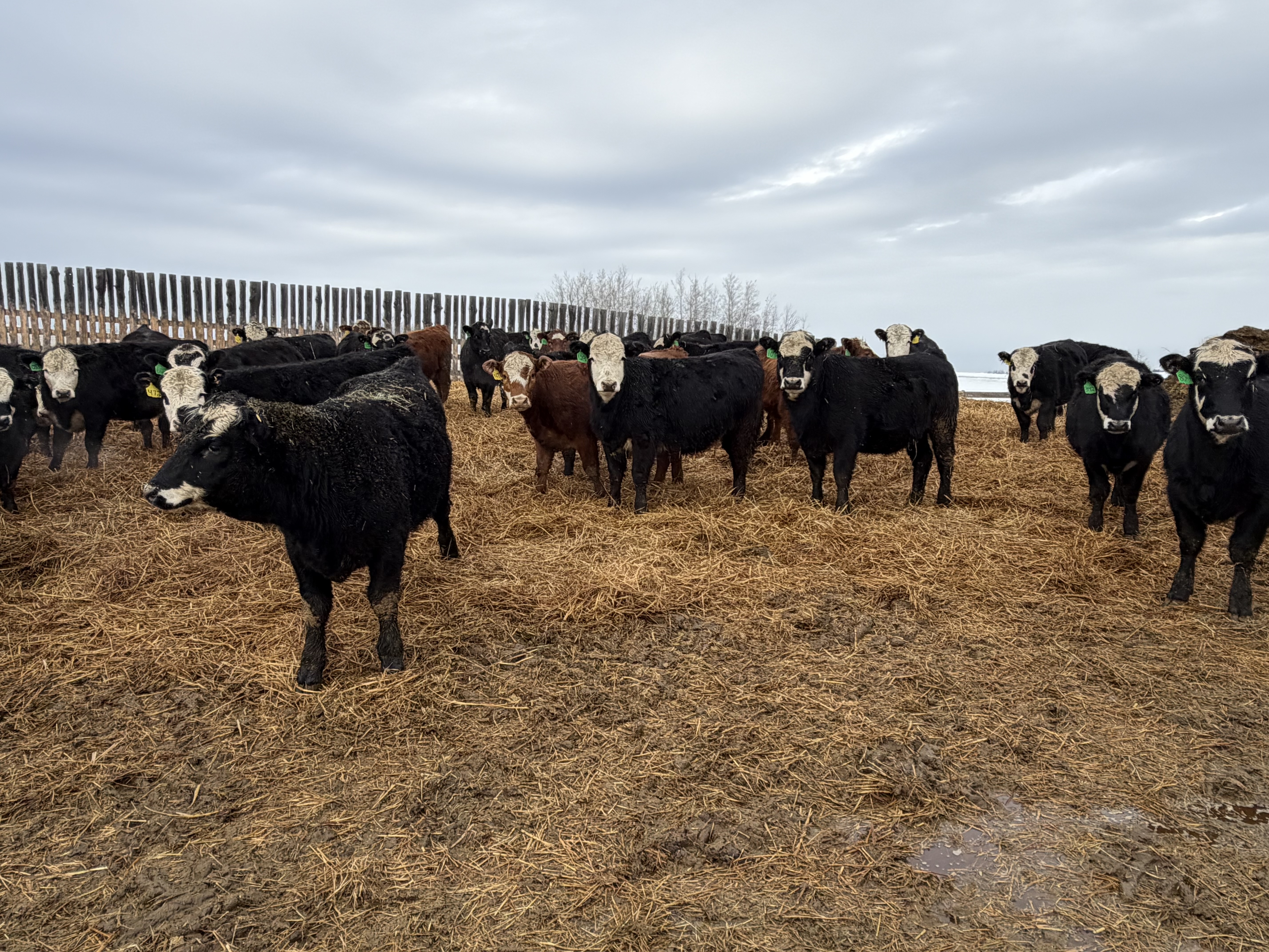 100 home raised, mostly black & black baldy April/May born F1 cross Black Angus & Hereford heifers.